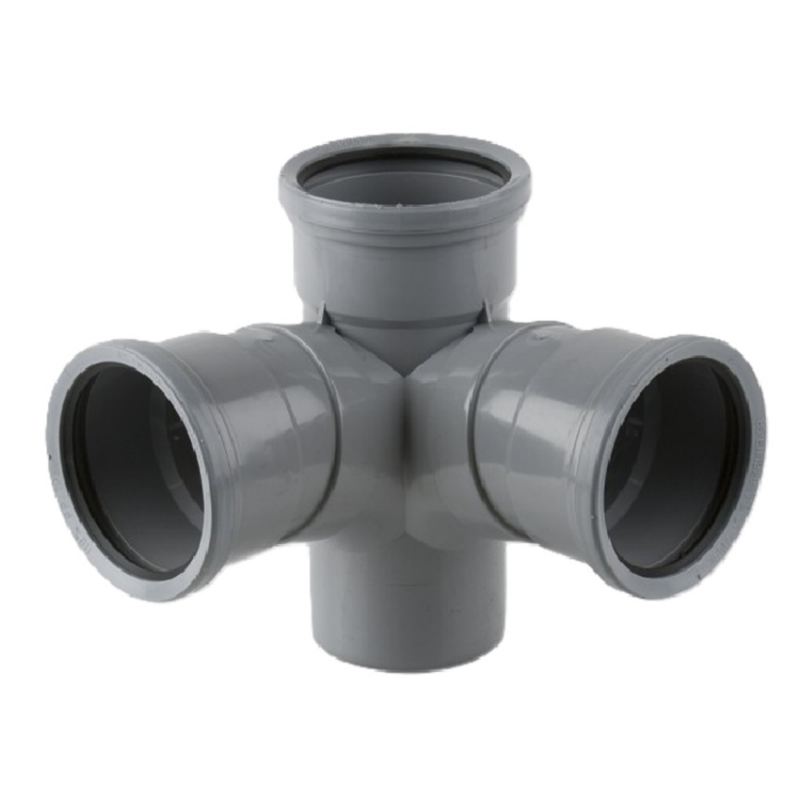 Brett Martin 110mm Push-Fit Soil uPVC Triple Socket 92.5 Degree Corner Branch, available in Grey.