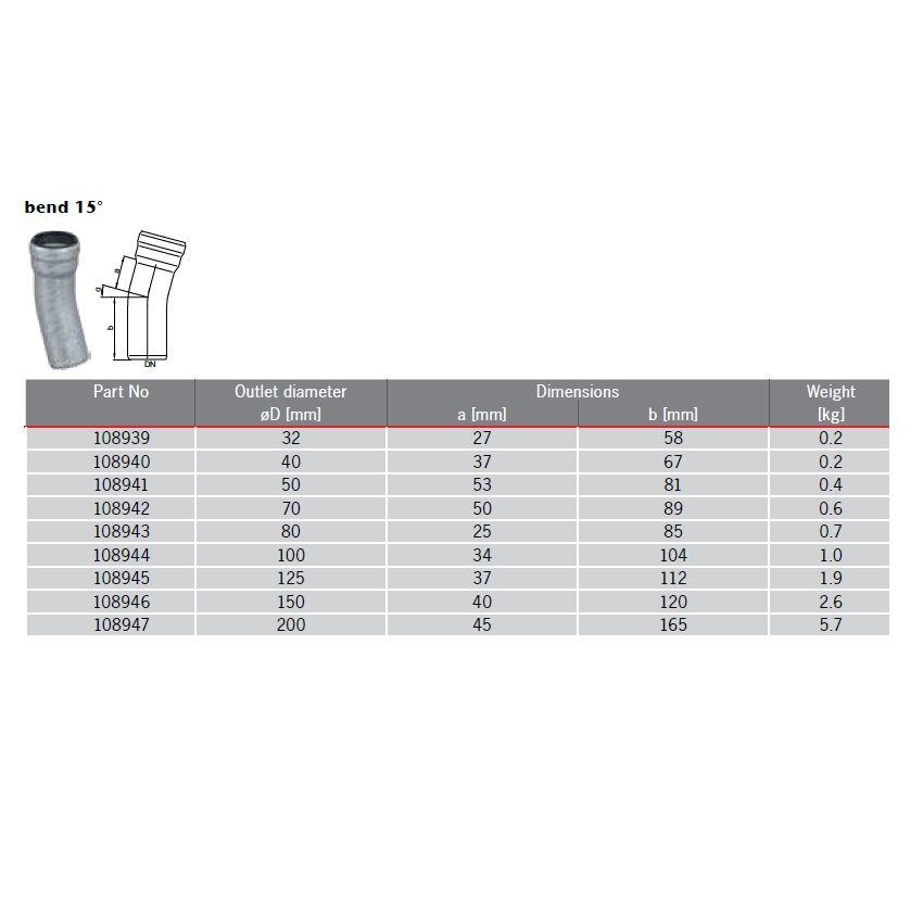 ACO GM-X Galvanised Steel Long Radius Bend 15°, available in 9no. pipe diameters.