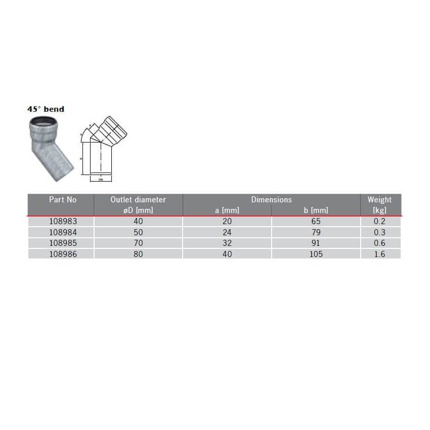 ACO GM-X Galvanised Steel Short Radius Bend 45°, available in 4no. pipe diameters.