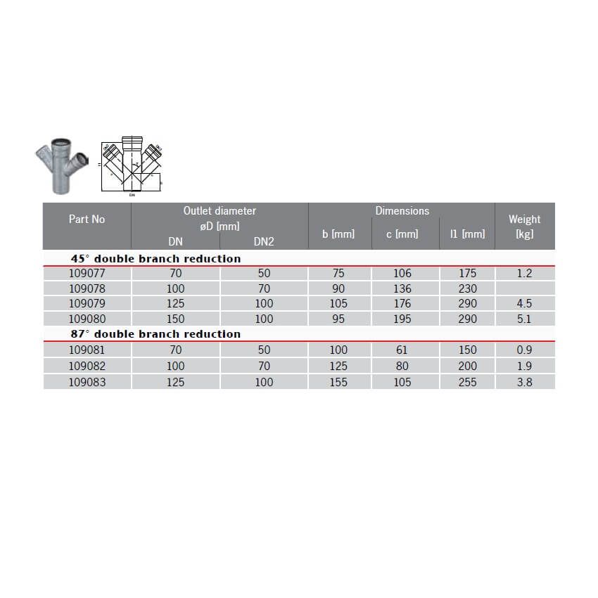 ACO GM-X Galvanised Steel Double Branch Reducer 45°, available in 4no. pipe diameters.