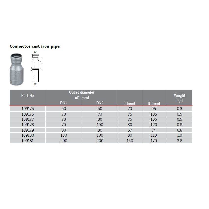 ACO GM-X Galvanised Steel Connector Cast Iron Pipe, available in 5no. rainwater drainage pipe diameters.