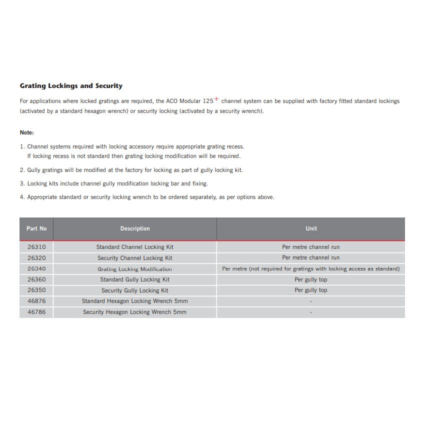 ACO Modular 125 Standard Channel Locking Kit