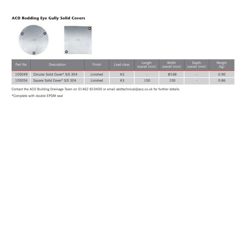 ACO Stainless Steel Rodding Eye Solid Cover - Square Top