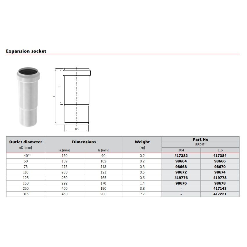 ACO Stainless Steel Socketed Eccentric Increaser Coupling with EPDM Seal