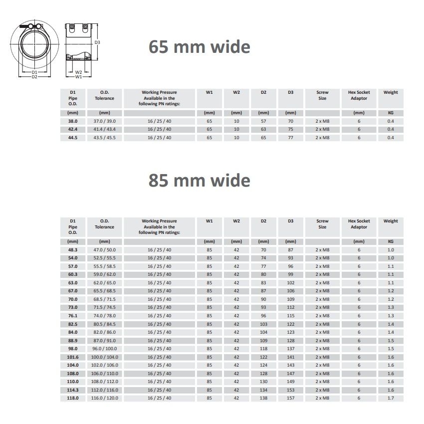 Teekay Axiflex Couplings, with EPDM Gasket, used to connect plain ended pipes, in pressurised applications below ground. Does not include anchor rings, which means another method must be used to prevent the pipes pushing or pulling apart.