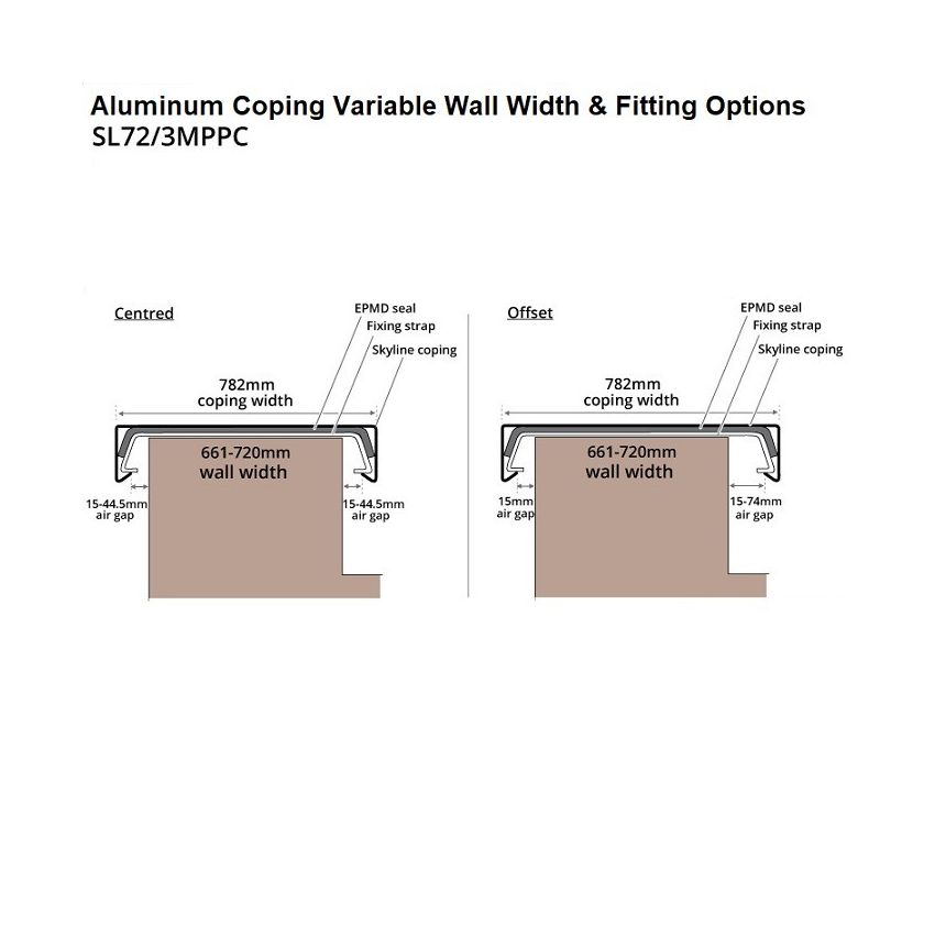 Please note: Copings installed in excess of 10m above ground level or on exposed site, may require the introduction of visible fixings due to increased wind loads.