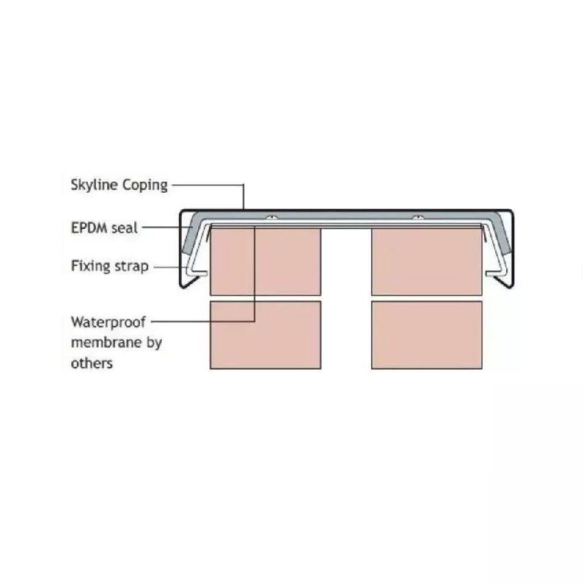 An aluminium coping system which provides a totally weatherproof covering to upstand parapets as fixing method does not penetrate the Skyline Coping.