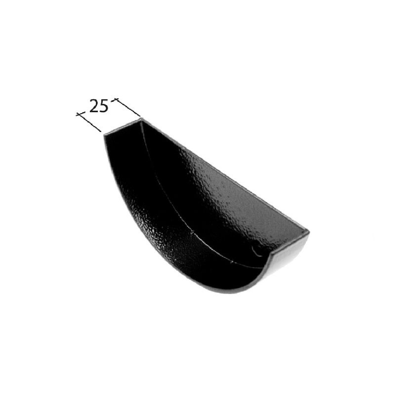 Half Round Aluminium Internal Stop End, 123mm x 51mm profile, together with a complete range of fittings. Available in a range of 19 RAL colours, with Textured Heritage Black available at a discounted rate on an estimated 5 working day lead-time.