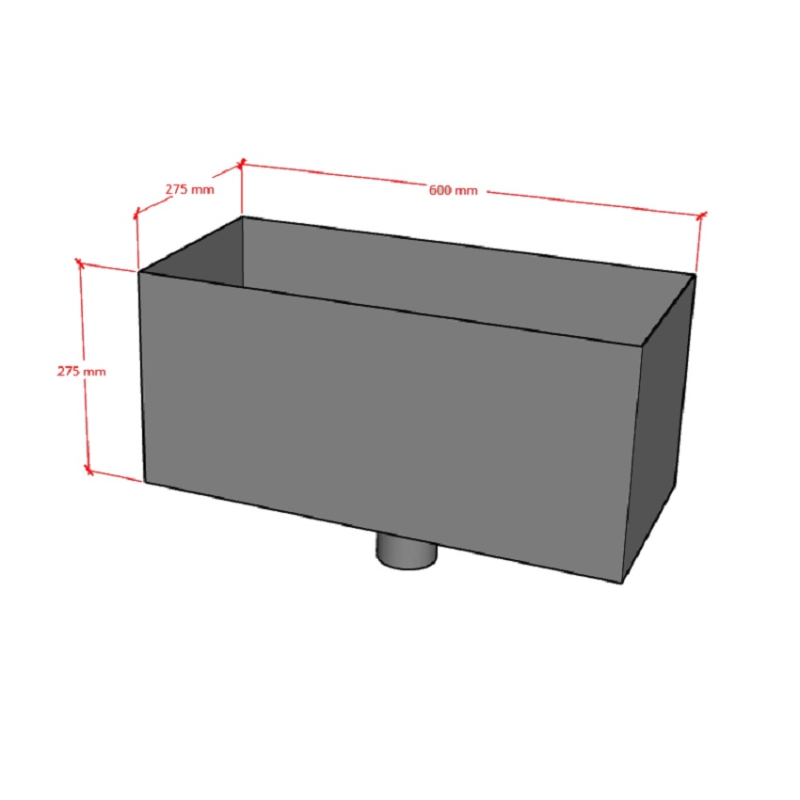 Rainguard Standard Aluminium Extended Hopper Head, (W)600mm x (H)275mm x (D)275mm, together with a complete range of fittings. Available in a range of 26 RAL colours, on an estimated 10 working day lead-time.