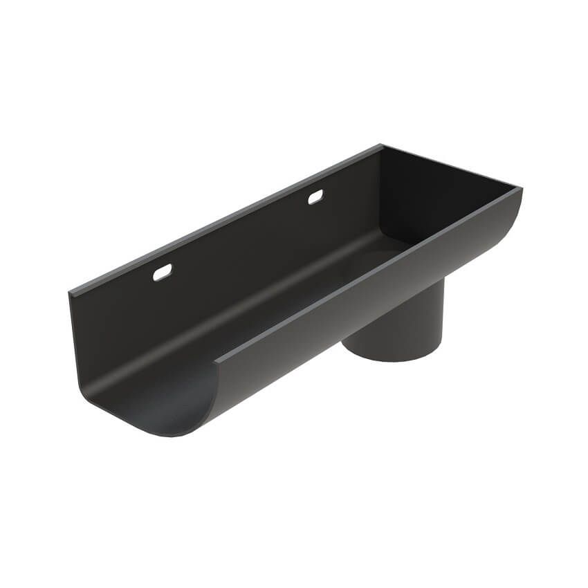 Rainguard Extruded Aluminium SL Quad Half Round Stopend Outlet, Right Handed, Profile, 125mm wide, 75mm deep, with a choice of 3 different Pipe sizes, for fixing directly back to the building.