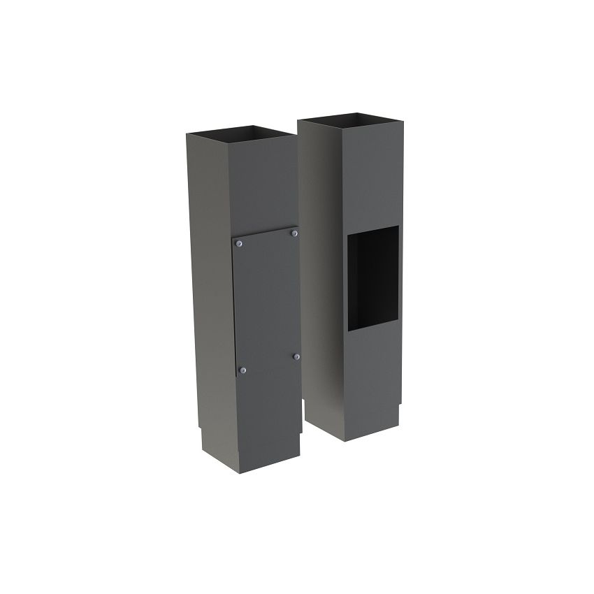 Rainguard Square-Rectangular Flushfit Aluminium Access Pipe With Plate, with internal spigot, are available in three sizes 75mmx75mm, 100mmx75mm & 100mmx100mm, together with a complete range of fittings. These aluminium downpipes are designed for modern buildings which require smooth clean lines.