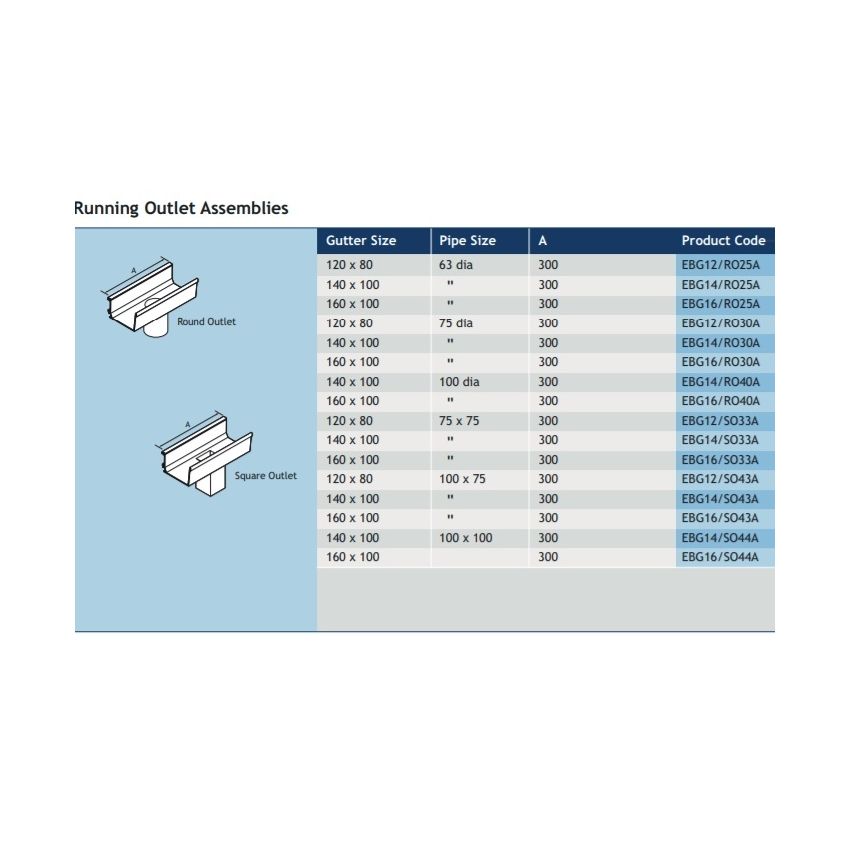 Colour - PPC RAL Colour TBA, Gutter Size - 160mmx100mm, Pipe Size - 100mm x 75mmAlumasc Aqualine Box Extruded Running Outlet, available in a choice of 3 gutter profiles.