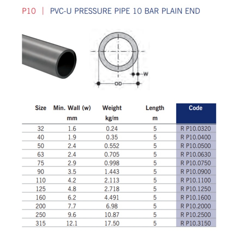 Astore PVC-U Optima Metric Pipe Plain PN10 x 6m,  OD ranges from ½"-8", recommended for use on irrigation, agriculture and swimming pool applications.