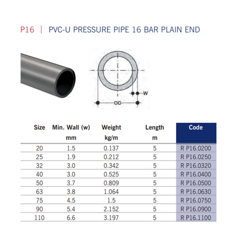 Astore PVC-U Premium Metric Pipe Plain PN16 x 5m, OD ranges from 20-110mm, or use in pressurised low temperature cold water systems, drinking water or for water treatment applications.