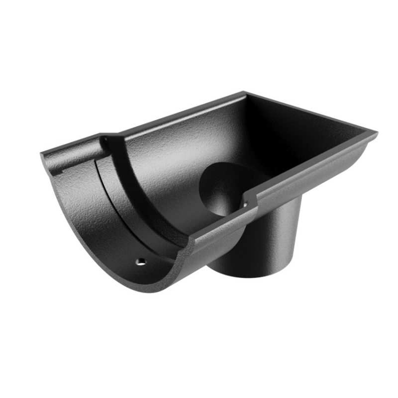 GC Beaded Half Round Cast Iron External Drop end Outlet available transit primed or factory applied wet paint finish in semi gloss black, with other standard colours on request.
