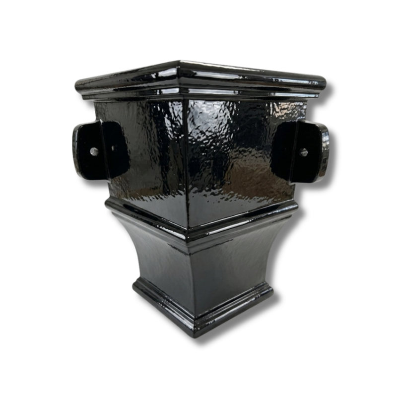 Hargreaves Premier Cast Iron Ornamental Corner Hopper Head H107A, available in Standard Grey Metal Primer or finished in Black Semi Gloss - Other Colours available upon request.