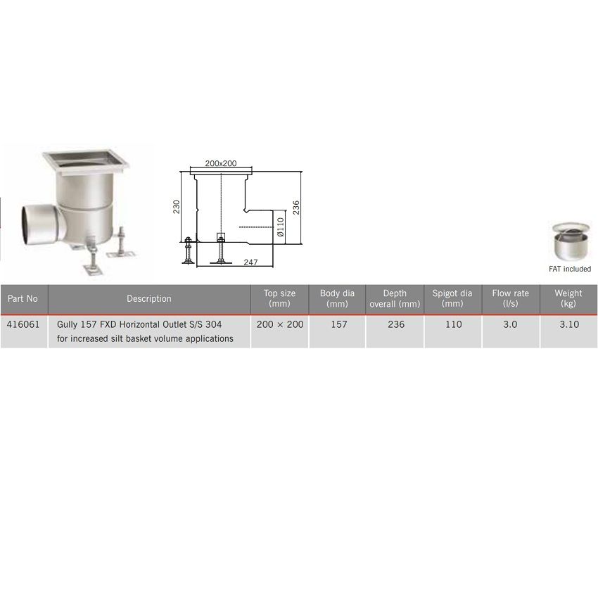 ACO Hygienic Stainless Steel Gully 157 Round Top - Fixed Height Vertical 110mm Outlet Top Size 230