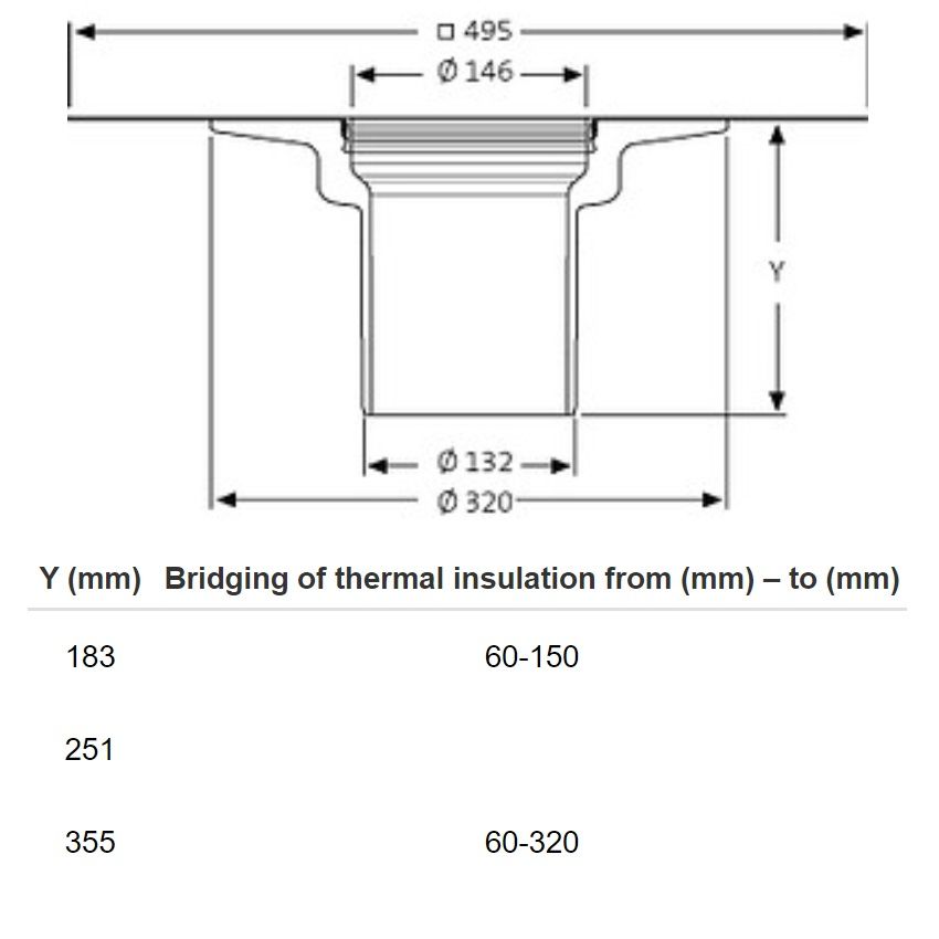 The SIta made of polyurethane, to DIN EN 1253-2 with enhanced quality standard to RAL quality mark GZ-694, for SitaTrendy / SitaTrendy screw-on flange roof outlet, thermally insulated, with sealing ring, for insulation thicknesses of 60 – 320 mm. With integrated selected connection sleeve.