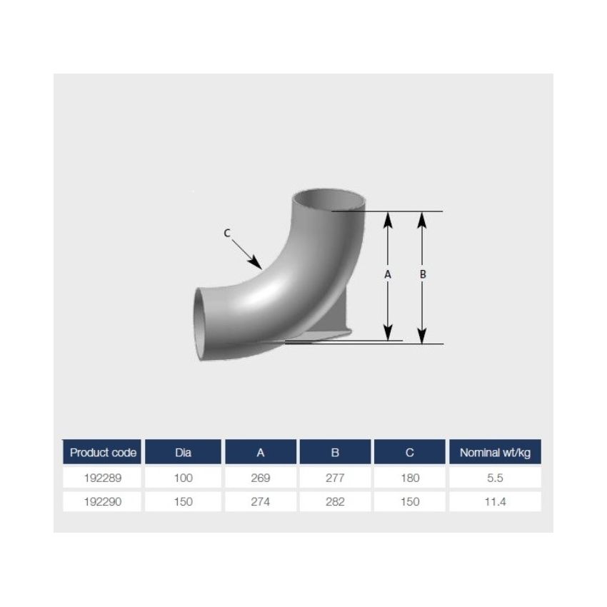 Ensign 88 Degree Medium & Long Radius Bend with Heel Rest ED007, available in 100mm and 150mm diameter, for Below Ground.