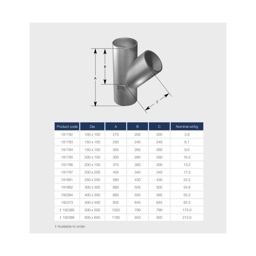Ensign 45 Degree Equal and Unequal Branch ED006, available in a range of diameters, for Below Ground