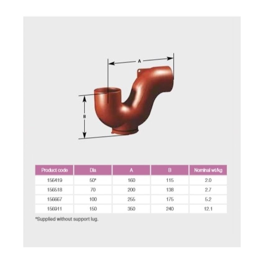 Pam Building Ensign Cast Iron Plain Traps with Bottom Access EF037, for Above Ground.