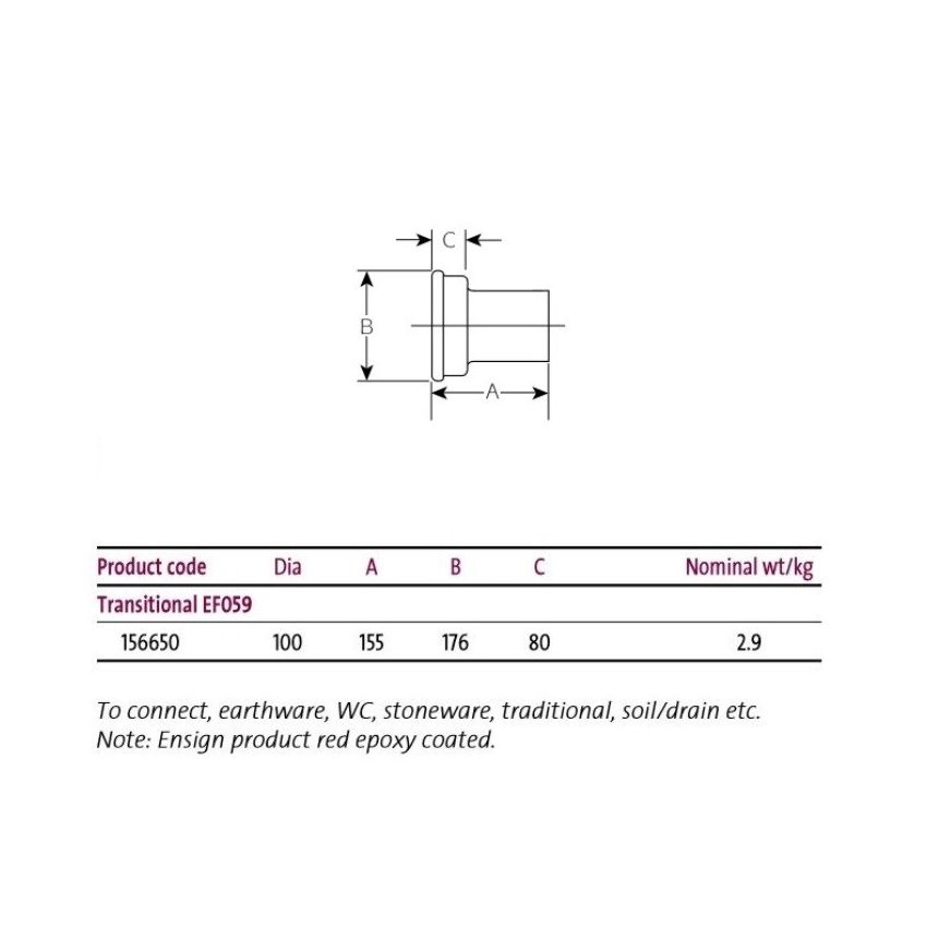 Pam Building Ensign Cast Iron Transitional Connectors EF059, for Above Ground.
