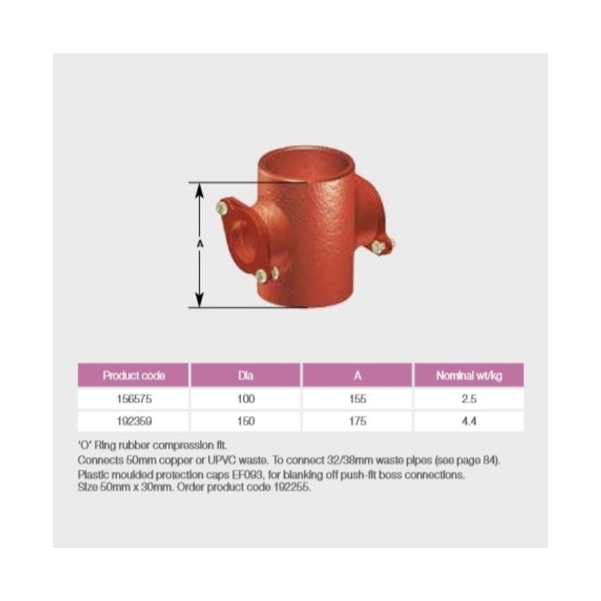 Pam Building Ensign Cast Iron 50mm double (opposed) Compression 88 degree Boss Pipes EF091, for Above Ground.