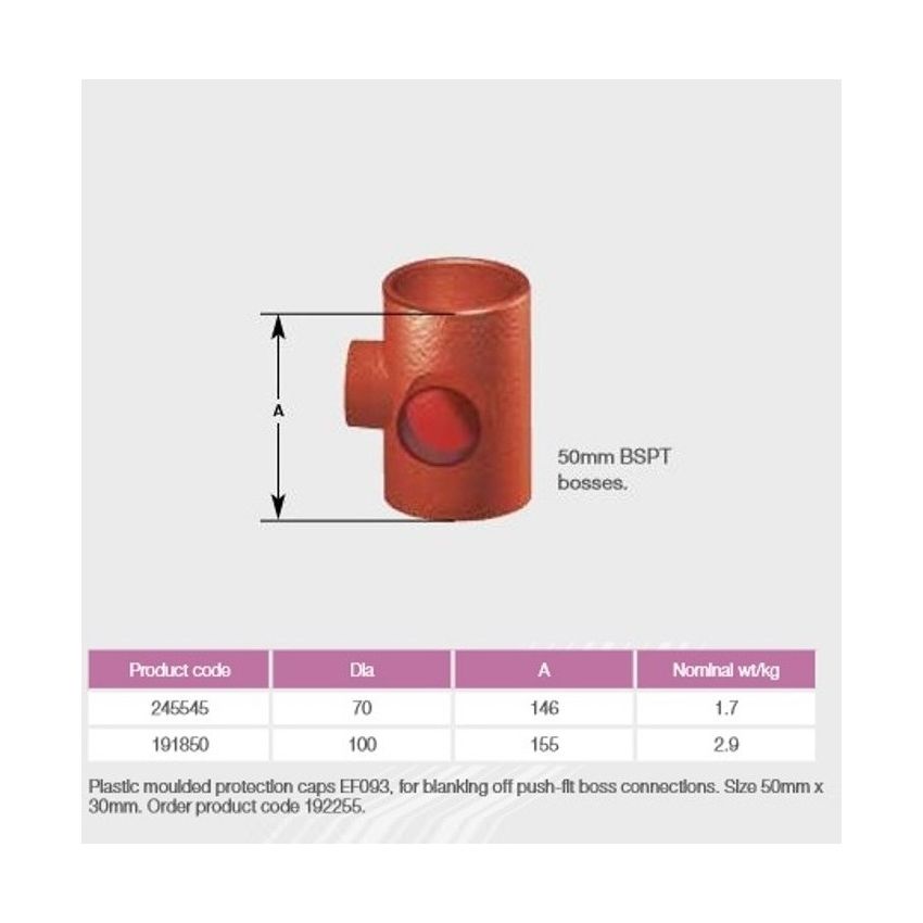 Pam Building Ensign Cast Iron 50mm double Drilled/tapped (BSPT) 90 degree Boss Pipes EF092T, for Above Ground.