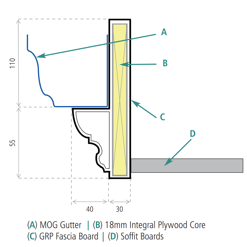 Fascia Board Profile Q, made from glass reinforced polyester, a material ideal for today’s environment - flexible and lightweight, yet offering heavy duty strength.