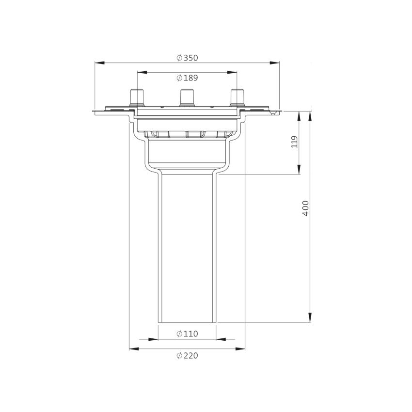 Made of cast iron, material EN-GJL-200, to DIN EN 1253-2 with enhanced quality standard to RAL quality mark GZ-694, with sealing ring, sealing sleeves and screw-on flange for clamping bitumen, plastic or EPDM roofing membranes and metal gutters, for insulation thicknesses of 80 – 300 mms.