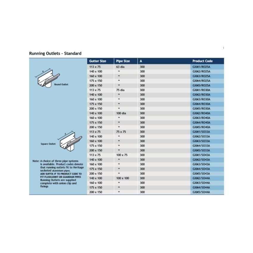 Alumasc GX Moulded Pressed Aluminium Running Outlet Square. GX Moulded is especially suited to applications where maximum capacity gutters are required.