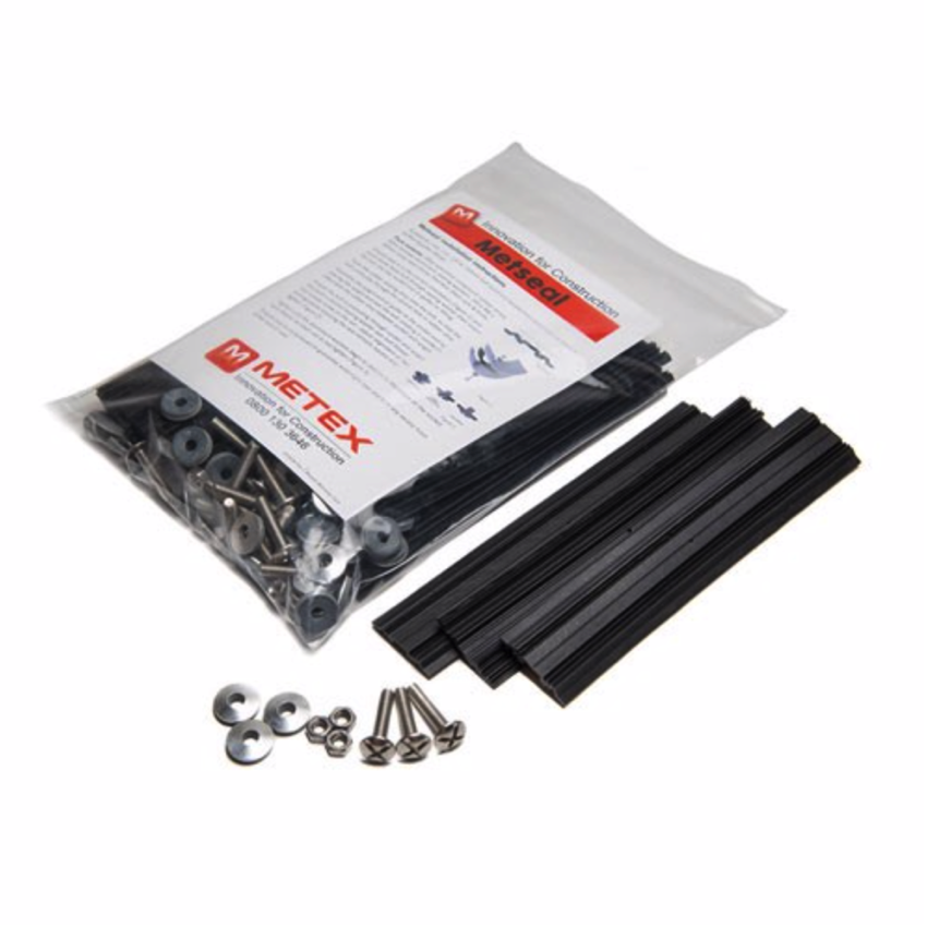 Pack contains 20no compound rubber strips, 40 no bonded aluminium sealing washers & 20no M6x30mm cross head dome stainless steel nut and bolt.