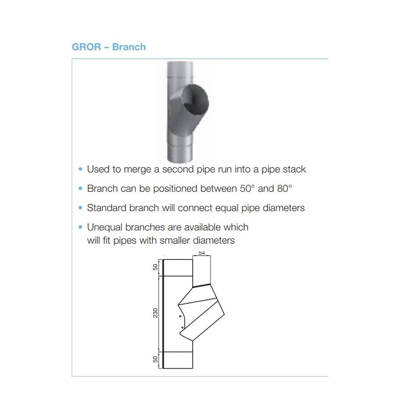 Round Steel Downpipe Branch available in Magnesium Coated Galvanised (Magestic). Plus a choice of eleven high-build polyester paint finishes.