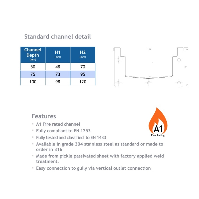 Harmer Modular 135 Stainless Steel Channel Centre Spigot 110mm Outlet