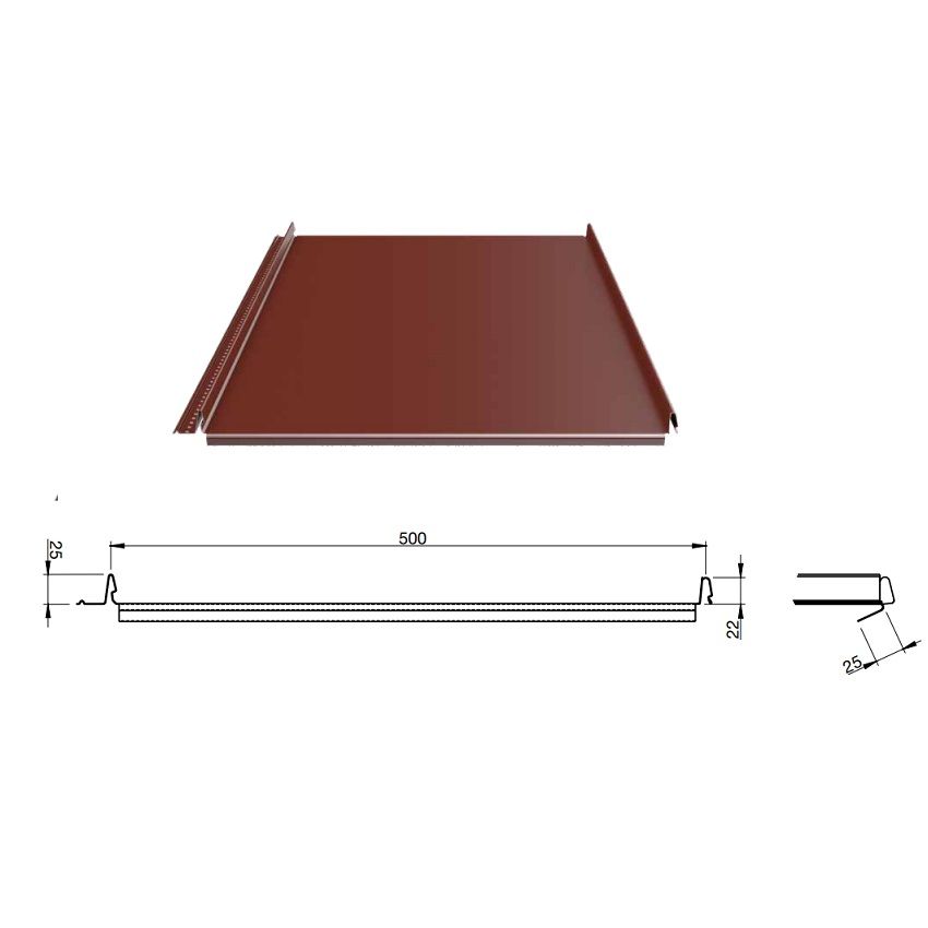 Lindab SRP25N Seam Steel Roof Profile 500mm, 0.6mm, 1m-8m length, available in Magnesium Coated Galvanised (Magestic), plus a choice of nine standard stock Coated RAL Colours