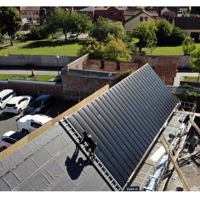 With Lindab Coverline you get a roof that looks like a classic seam roof. You do not need any special abilities; it takes little time to install the roof profiles. Lindab SRP 25N is recommended down to a 12° pitched roof, will fit most types of roof and is particularly suitable for roofs with few obstacles.