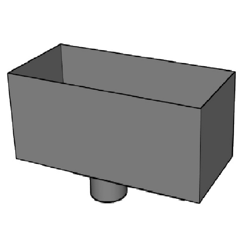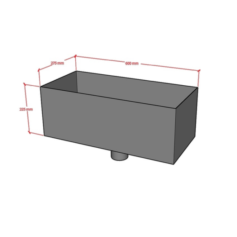 Steel Large Rectangular Water Hopper with 75mm, 87mm, or 100mm Outlet (size W600mm x D275mm x H275mm)available in plain Uncoated Galvanised. Plus a choice of ten high-build polyester paint finishes. More information available at www.steelgutteringcentre.co.uk