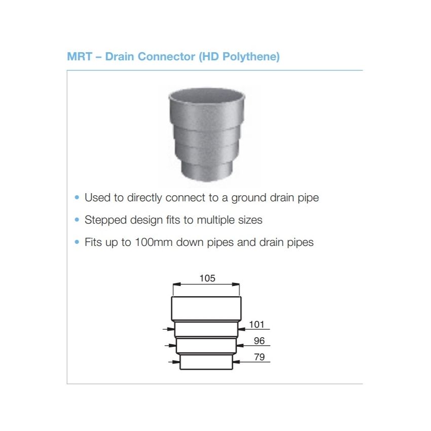 Round Drainage Adaptor for Lindab Steel Downpipes made from HD Polyethylene Plastic