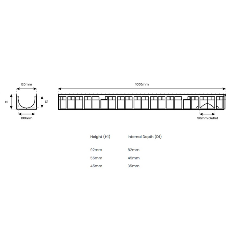 Lite Prem 100 Sump Unit Channel X 0.5m C/W Grating