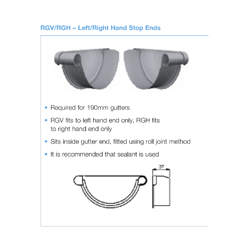Lindab Magestic Galvanised 190mm Steel Half Round Gutter Stop End (Left/Right Handed) available in Magnesium Coated Galvanised (Magestic). Spacings are recommended at 800mm intervals.