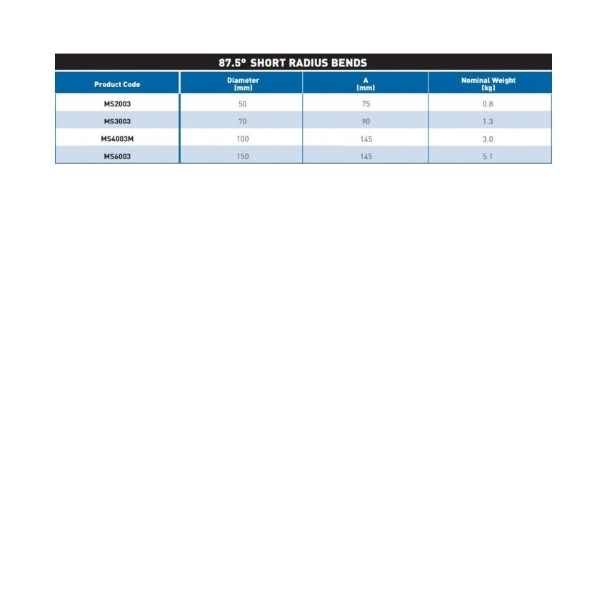 MECH 416 Soil 87.5 Degree short radius bends, available in 50mm, 70mm, 100mm & 150mm diameter.