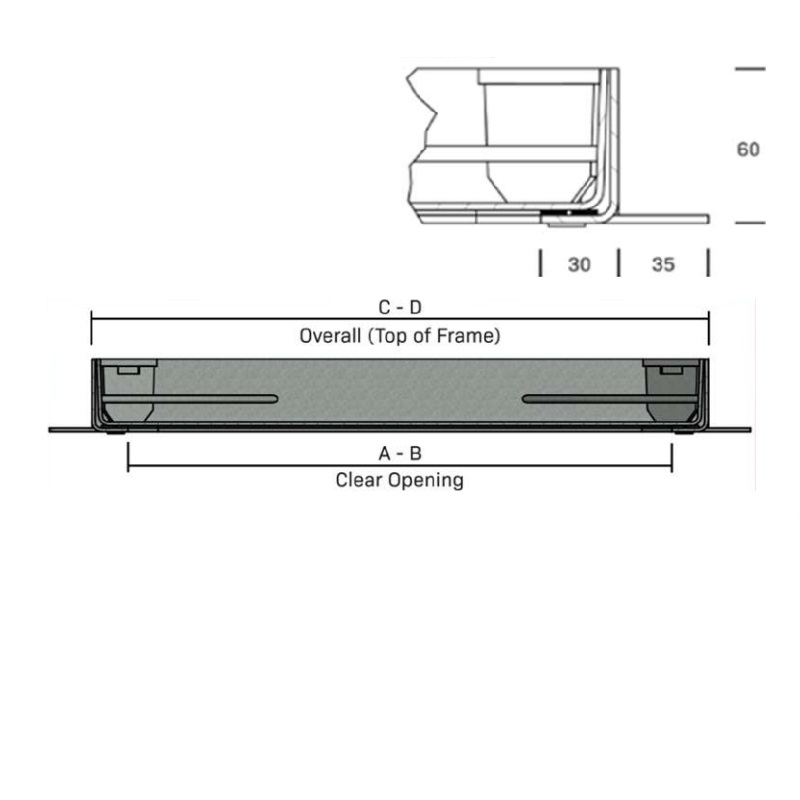 The multi-infill recessed tray is our medium duty product for domestic, internal and public realm applications. Manufactured with popular frame depth of 60mm for areas with less restricted depth flooring levels. This product is designed to take a VERY wide range of flooring while maintaining a high weight loading capability. This design can take all of the infills of the shallow option, but additionally allows for other decorative paving such as sandstone, porcelain and solid infill up to 30mm. In addition to this the tie bars can be removed for resin fixing deeper paving up to 50mm e.g. concrete paving slabs, tactile paving and shallow granite blocks which are all popular in town centre regeneration schemes.