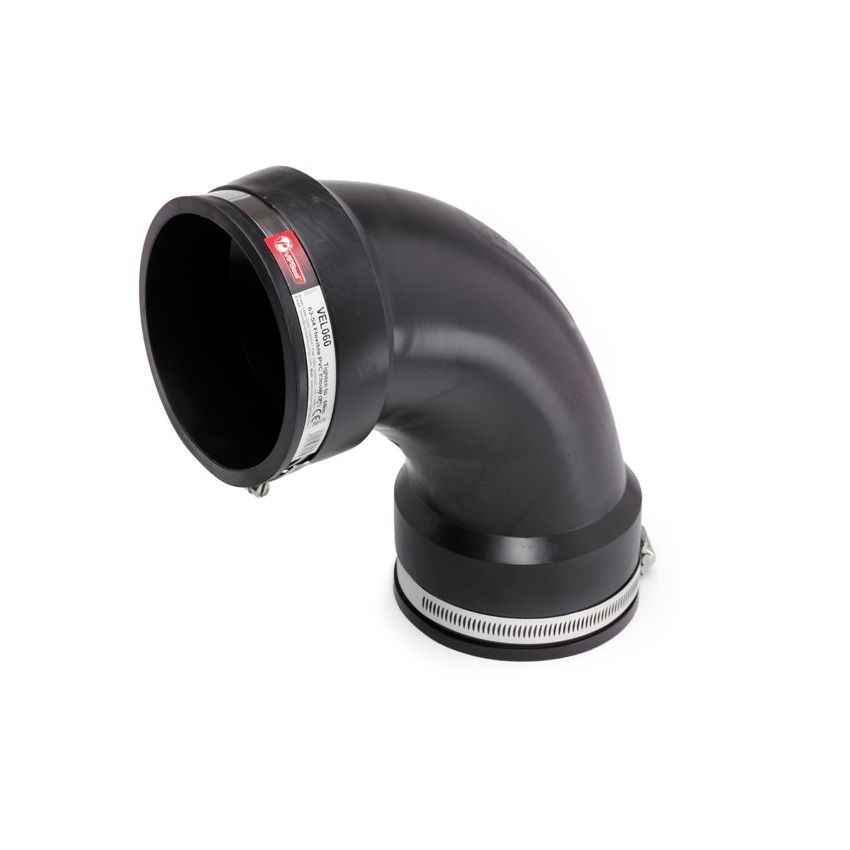 VIPSeal Plumbing 90 Degree Elbow coupling, made from high quality thermoplastic flexible PVC, available in four sizes, O/D size range from 41mm up to 116mm.