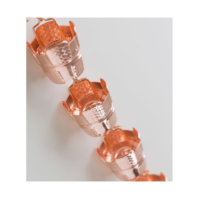 Ajiro Rain Chain made from Copper. The wickerwork is all pure copper which will, over the course of many years, change into an elegant verdigris colour. Owners can enjoy the character, of this unpainted pure copper rain chain, as its beauty changes with the passing of time.