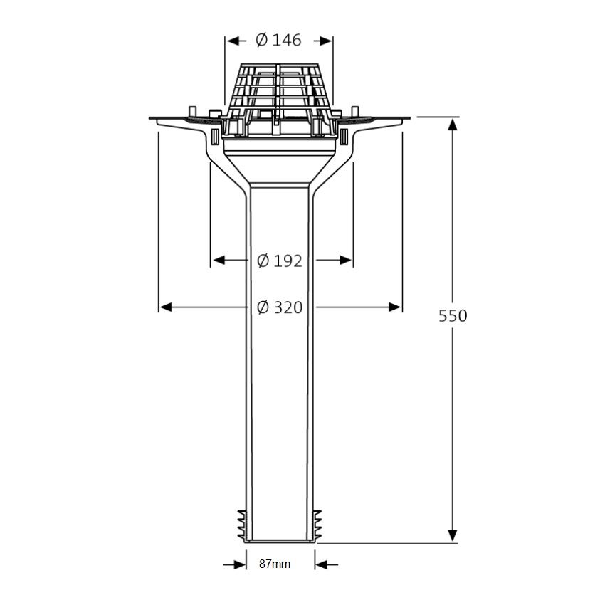 Sita Sani Refurbishment Vertical Screw-on Flange Roof Outlet, complete with Dome gate, length 255 and 550mm, in twp sizes 70 and 105, suitable with internal diameters between 82 - 103mm and 105 - 134mm.