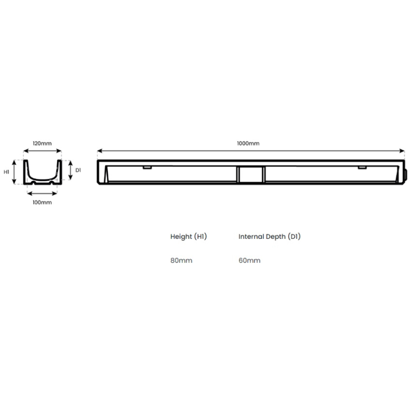 Self Pro 100mm Polymer Concrete Channel X 1m C/W Grating A15