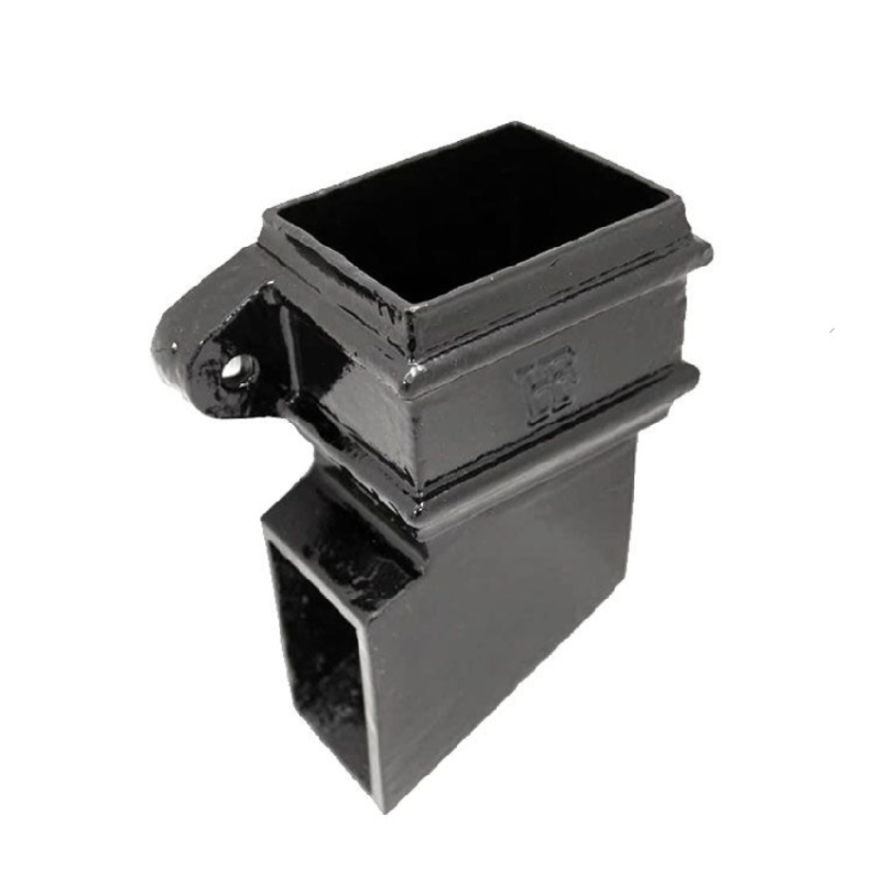 Premier Square Cast Iron Downpipe Shoe Eared Left Handed available in Grey Metal Primer or finished in Black Semi Gloss - other colours available on request.