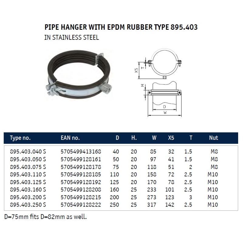 Blucher Europipe Galvanised Steel AISI Pipe Hanger with EPDM Rubber Type 895.401