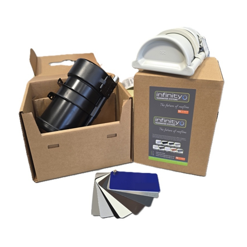 Free Alumasc Infinity Steel Half Round Gutter Sample Box, Gutter Size 115m, Available in both Galvanised and Copper, plus seven painted finish.