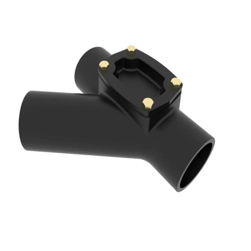 Pam Building Cast Iron 45 Degree Single Branch with Left Hand Access Door, available in 100mm x 100mm, 150mm x 100mm, 225mm x 100mm, 225mm x 150mm & 225mm x 225mm diameter, for Below Ground.
